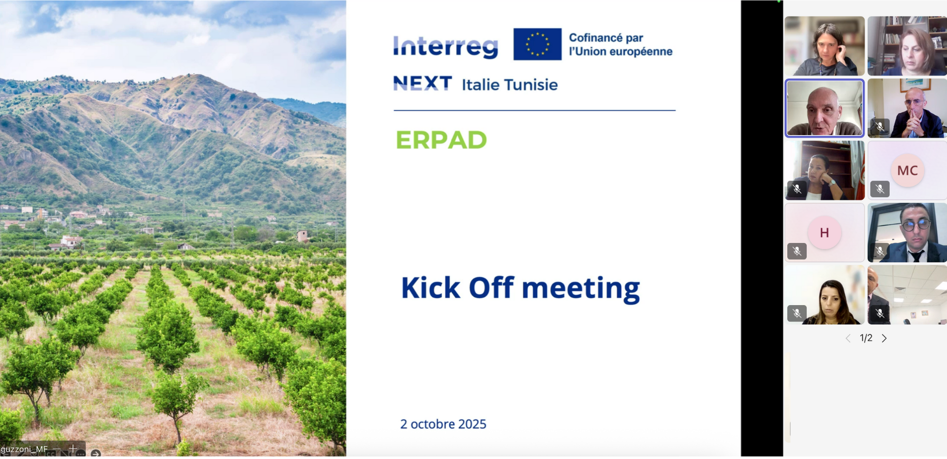Si è tenuto il 2 ottobre il kick-off meeting del progetto ERPAD – Eau ressource pour l’agriculture de demain, cofinanziato dall’Unione Europea nell’ambito del Programma INTERREG Italia–Tunisia.